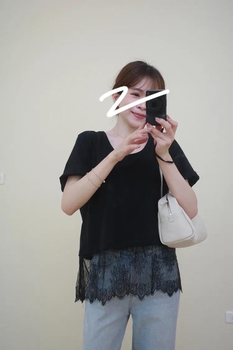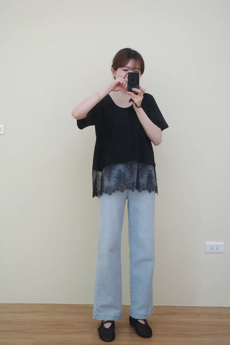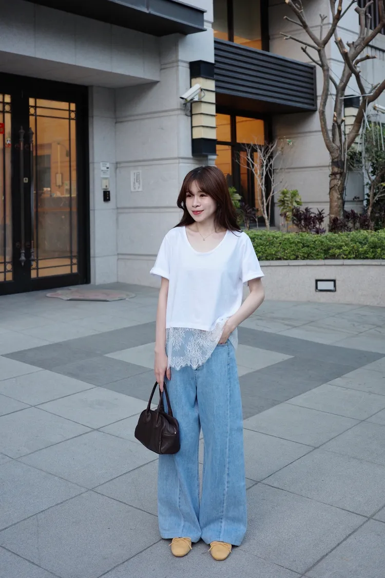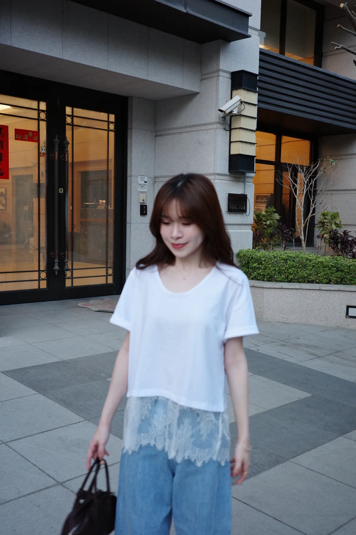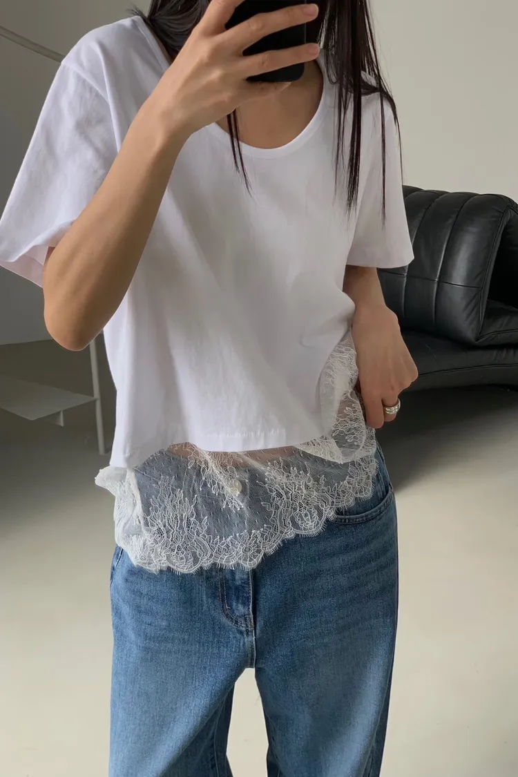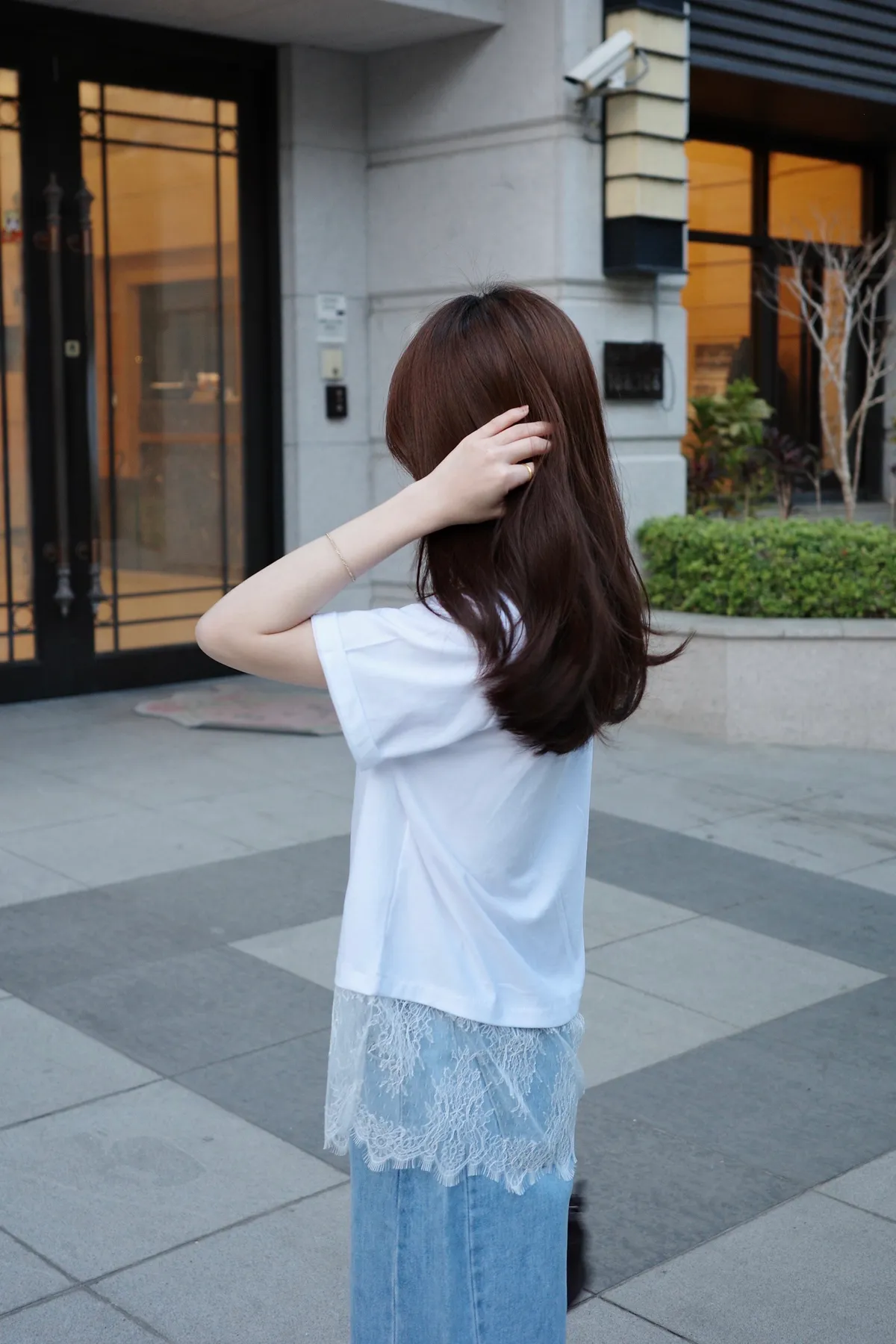在棉踢下擺拼接柔軟的睫毛蕾絲