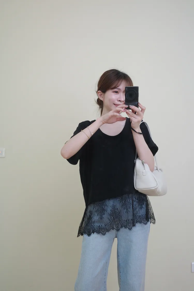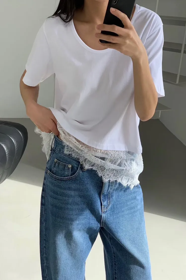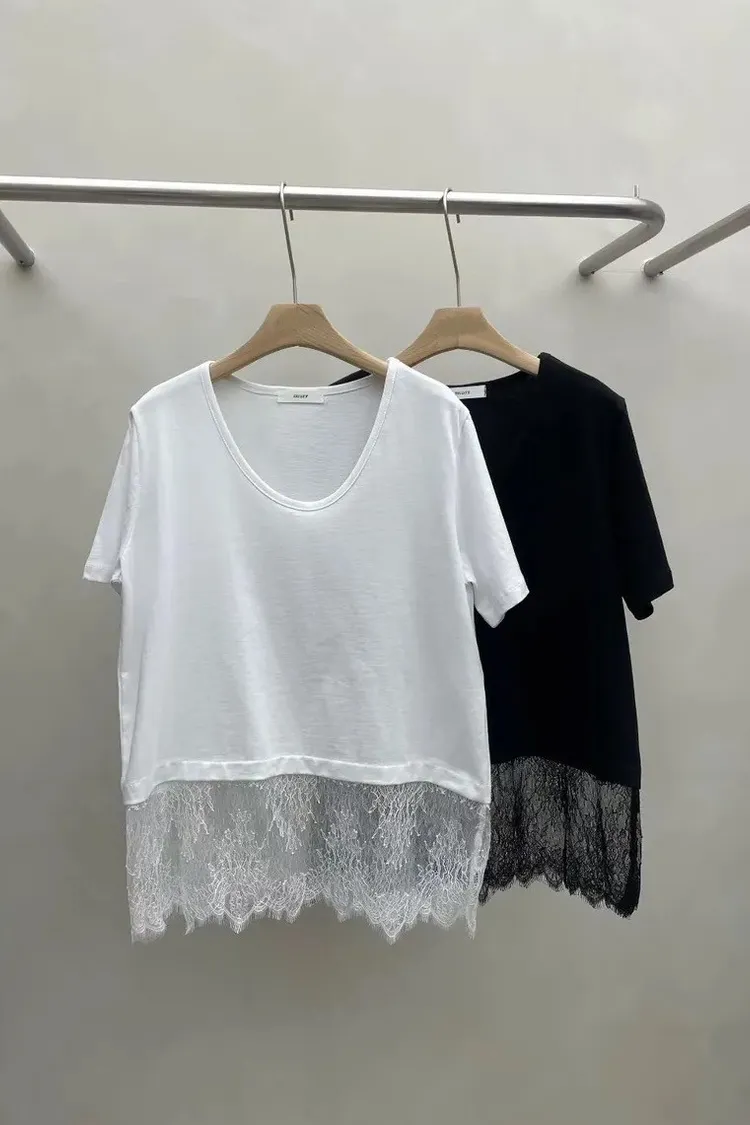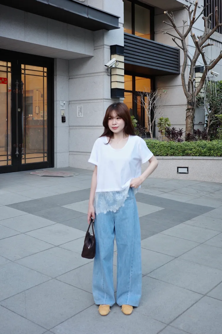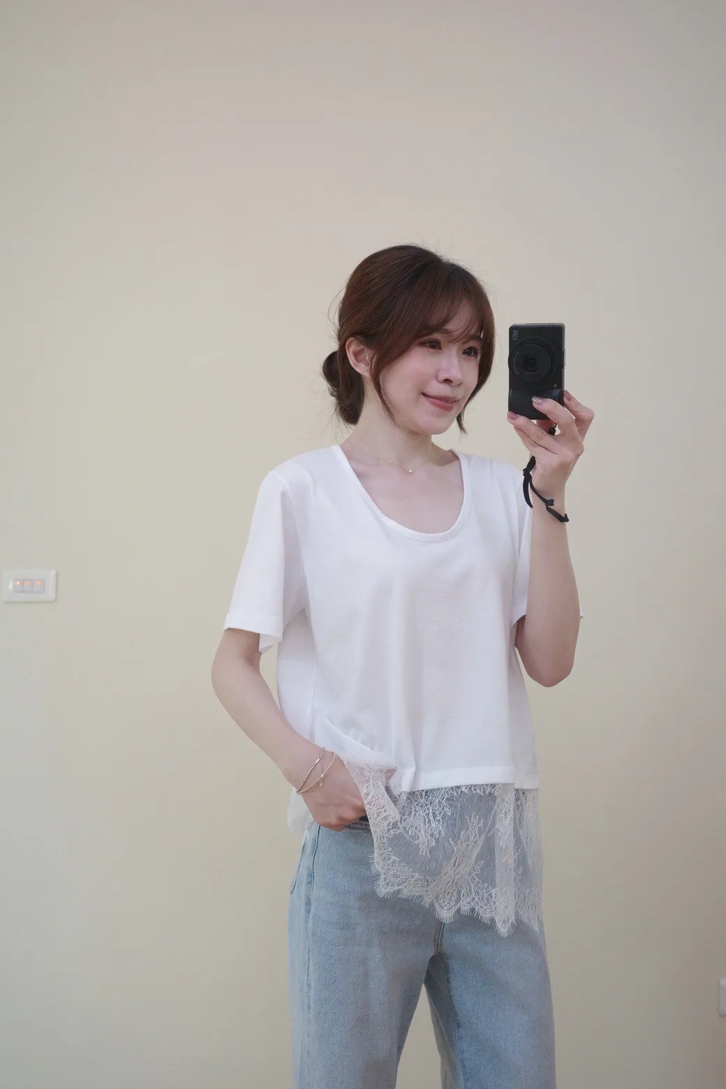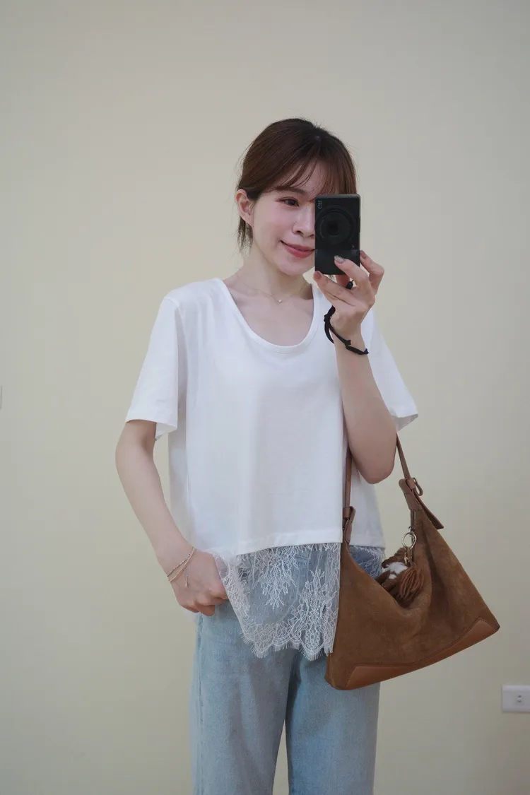 在棉踢下擺拼接柔軟的睫毛蕾絲