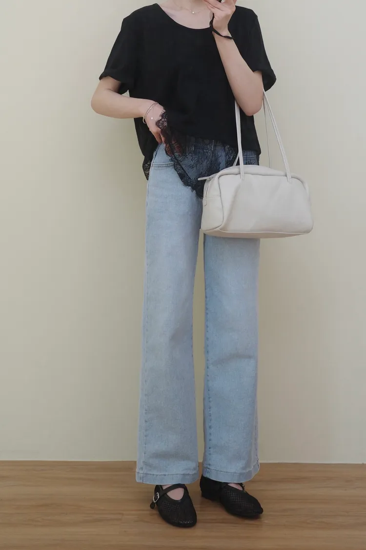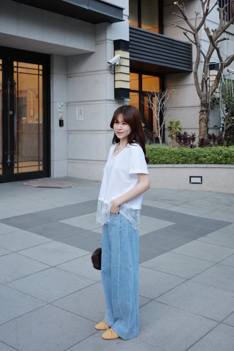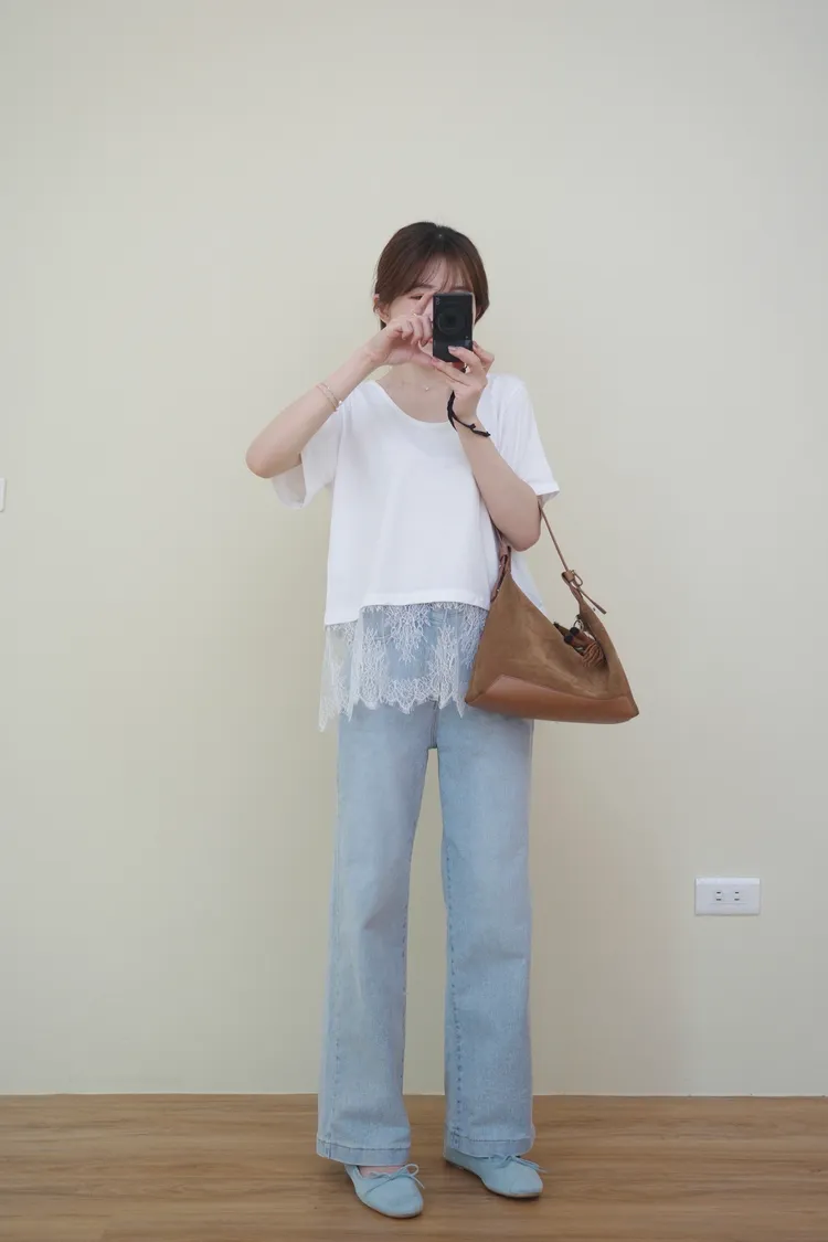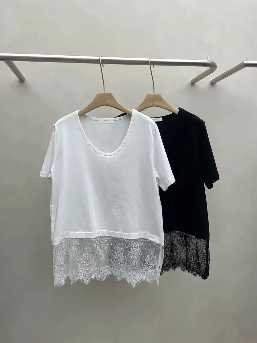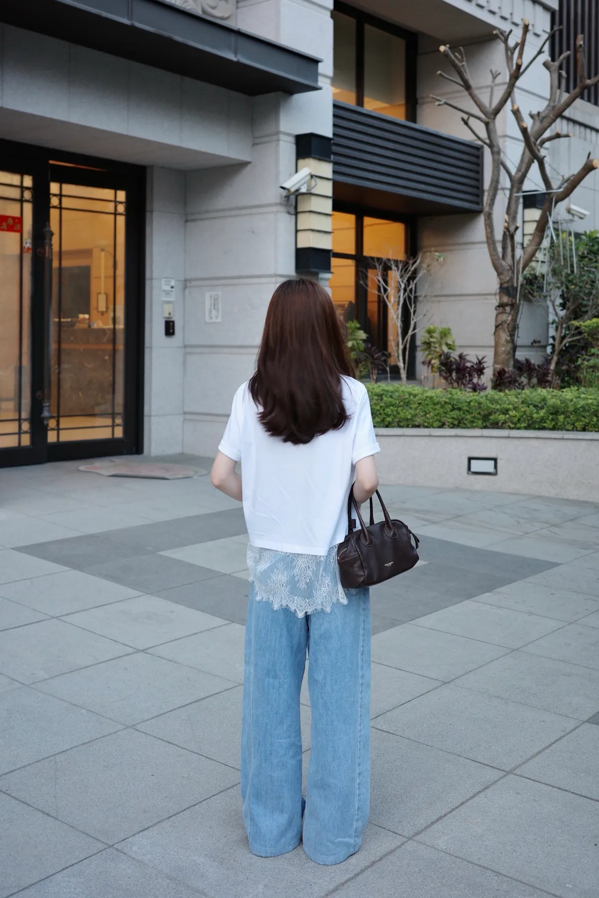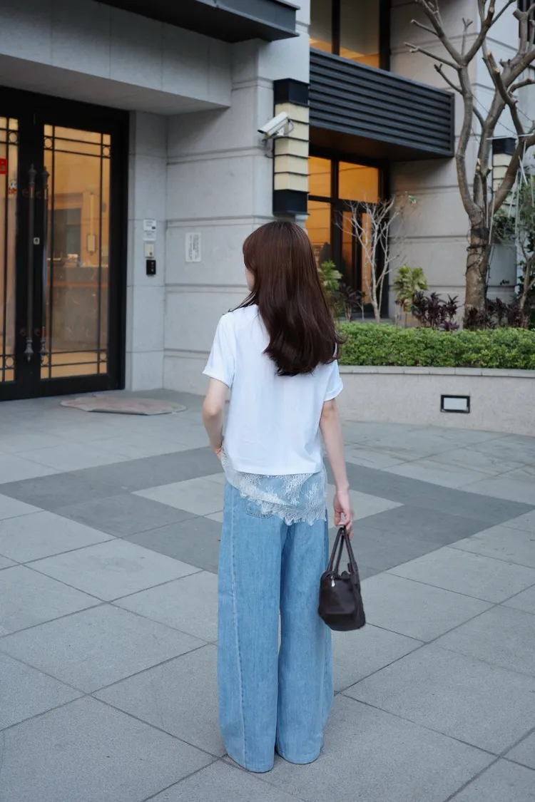 在棉踢下擺拼接柔軟的睫毛蕾絲