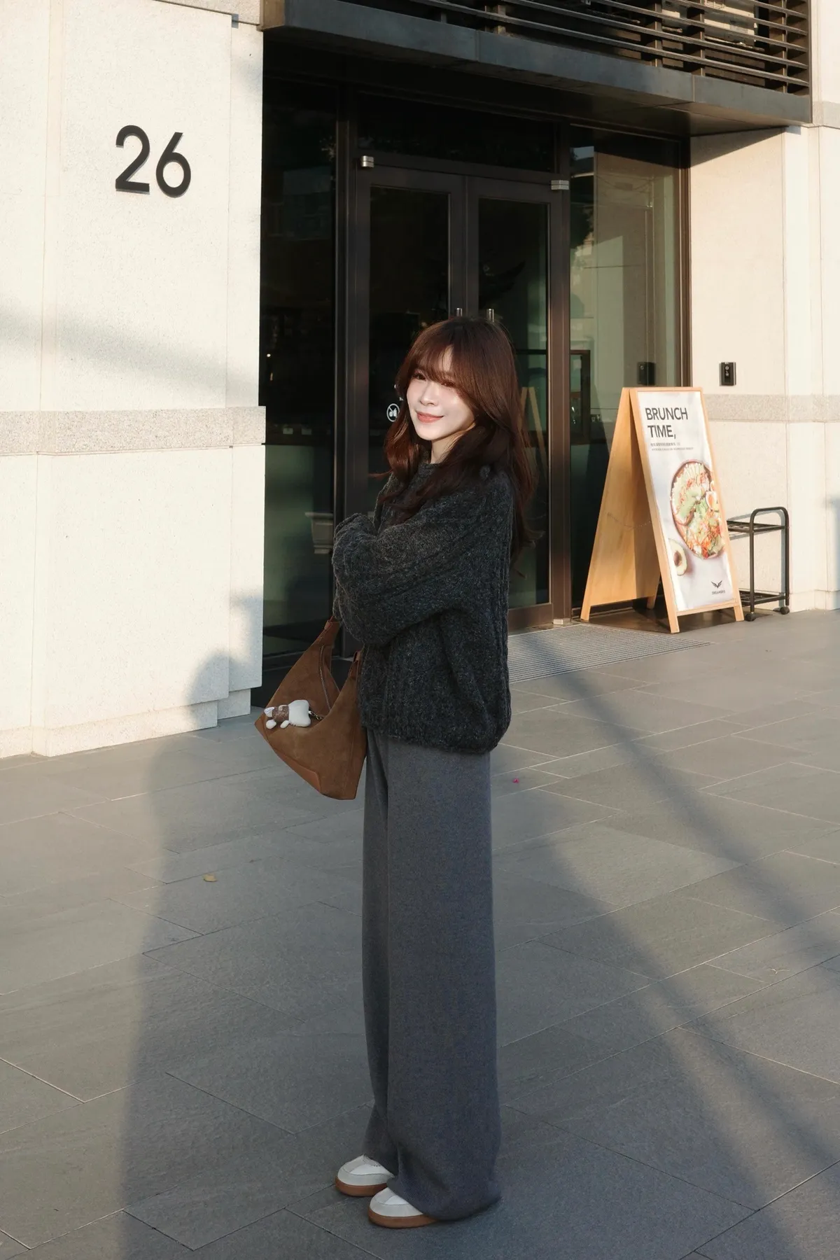 其實搭配冬天的寬鬆毛衣、大學踢