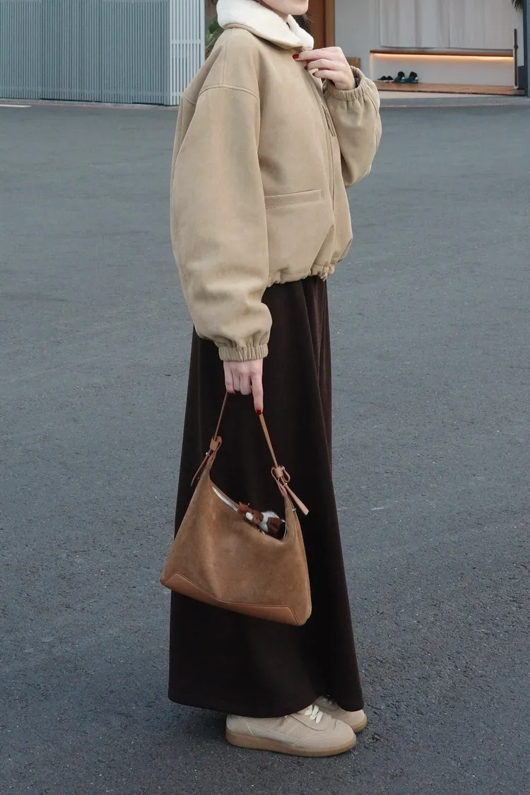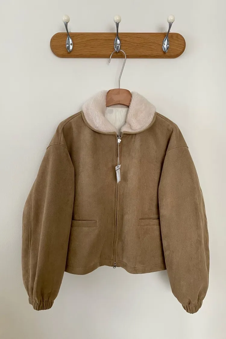 外套表面是很柔軟的麂皮絨材質