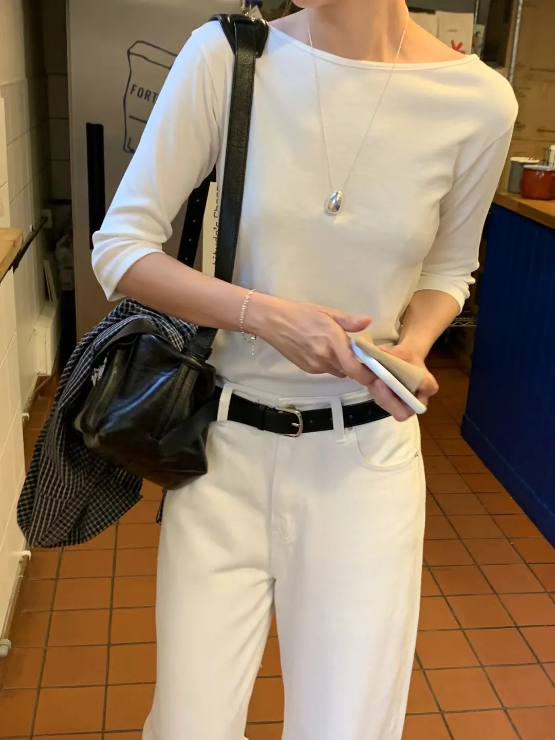 袖長落在手肘下方一些(約七分)