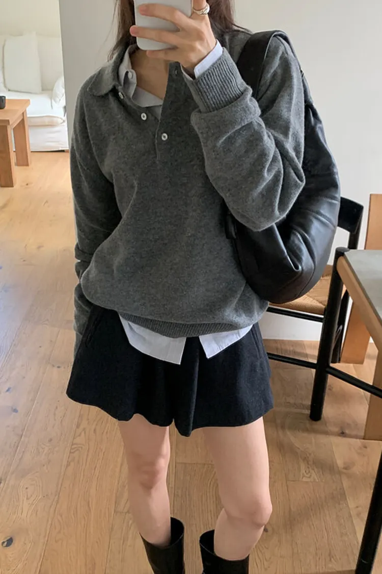 落肩寬鬆版型+polo領設計