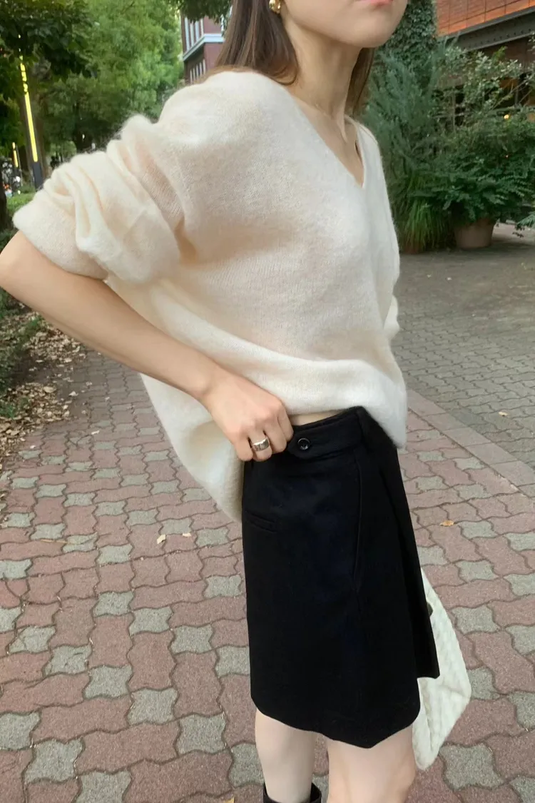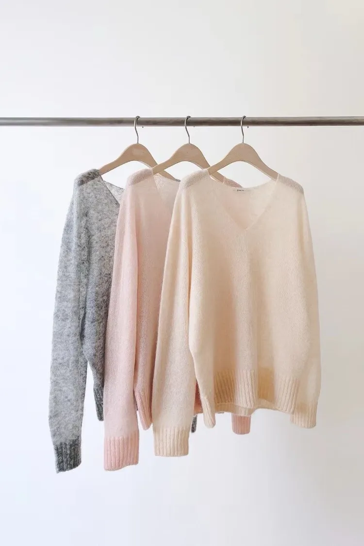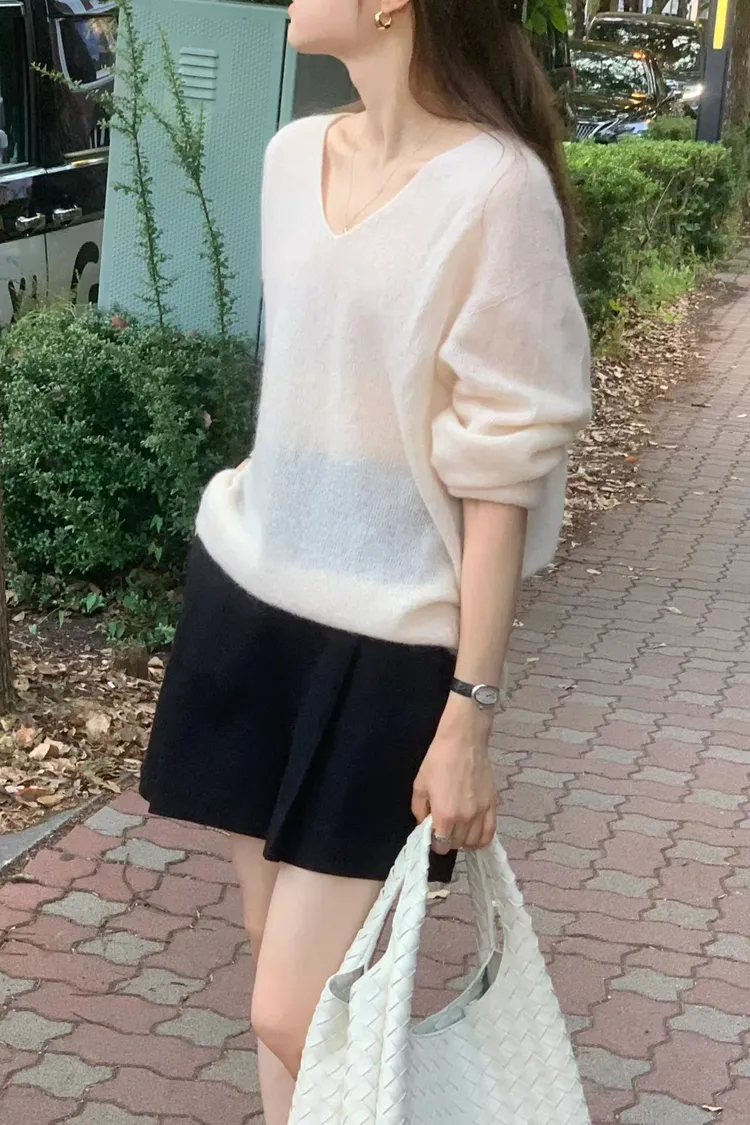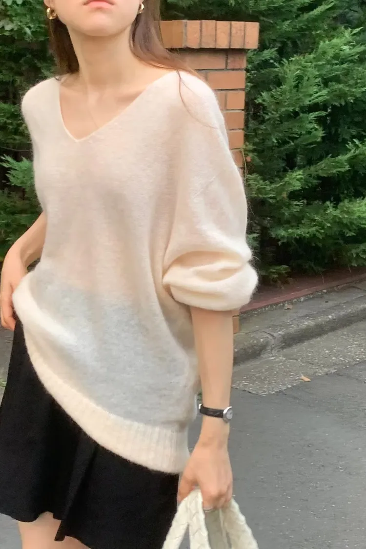 仙氣微透膚馬海毛羊毛V領毛衣(一體成形設計)