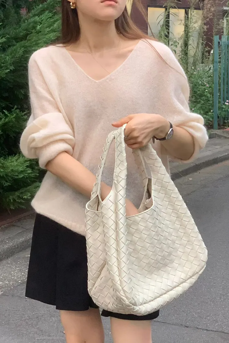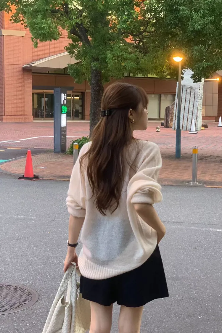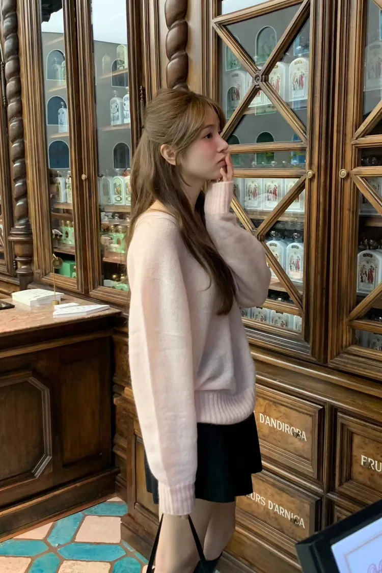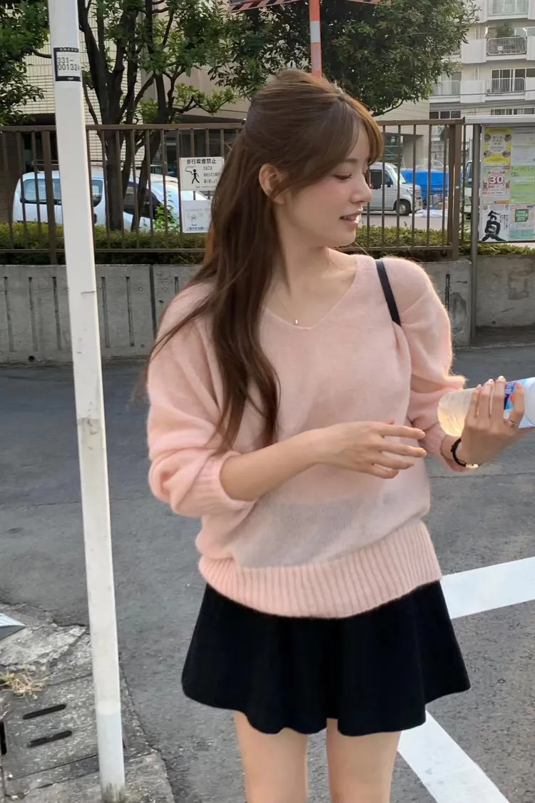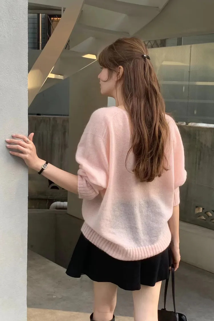 仙氣微透膚馬海毛羊毛V領毛衣(一體成形設計)