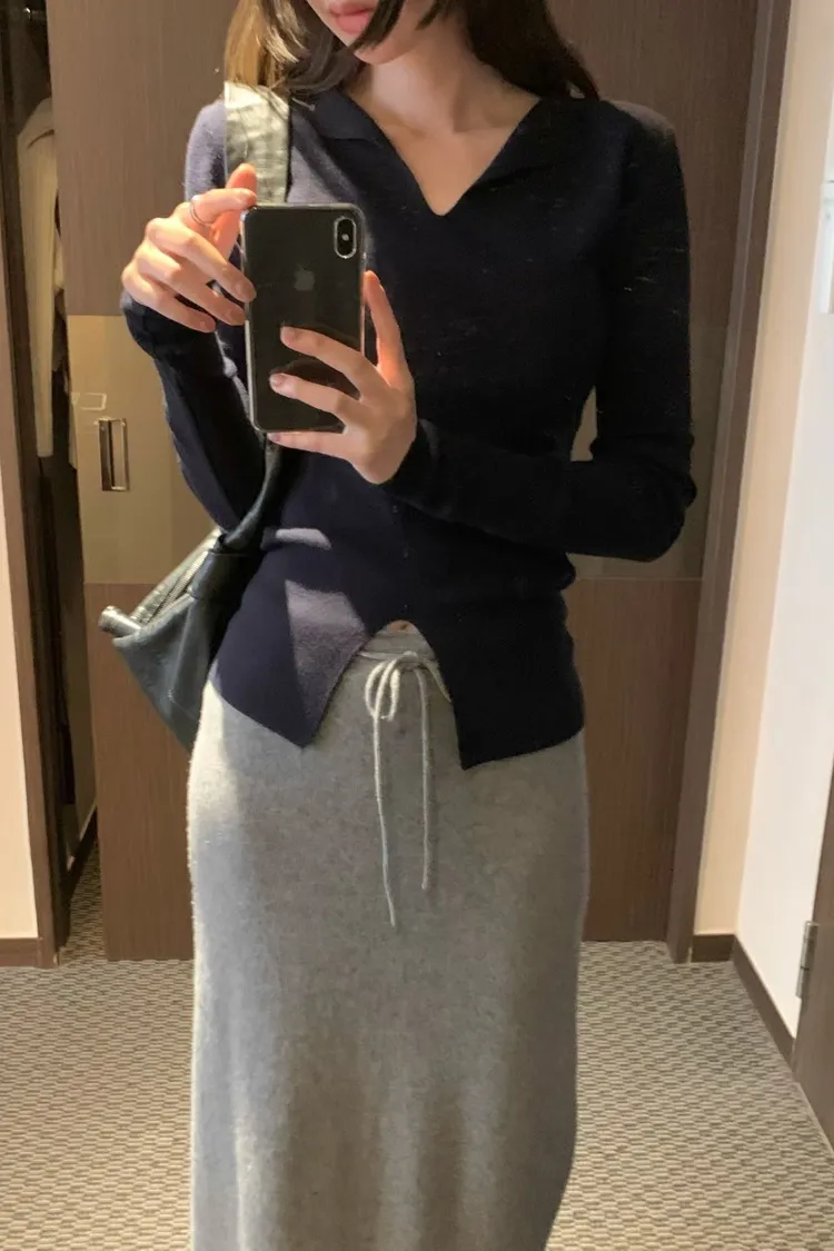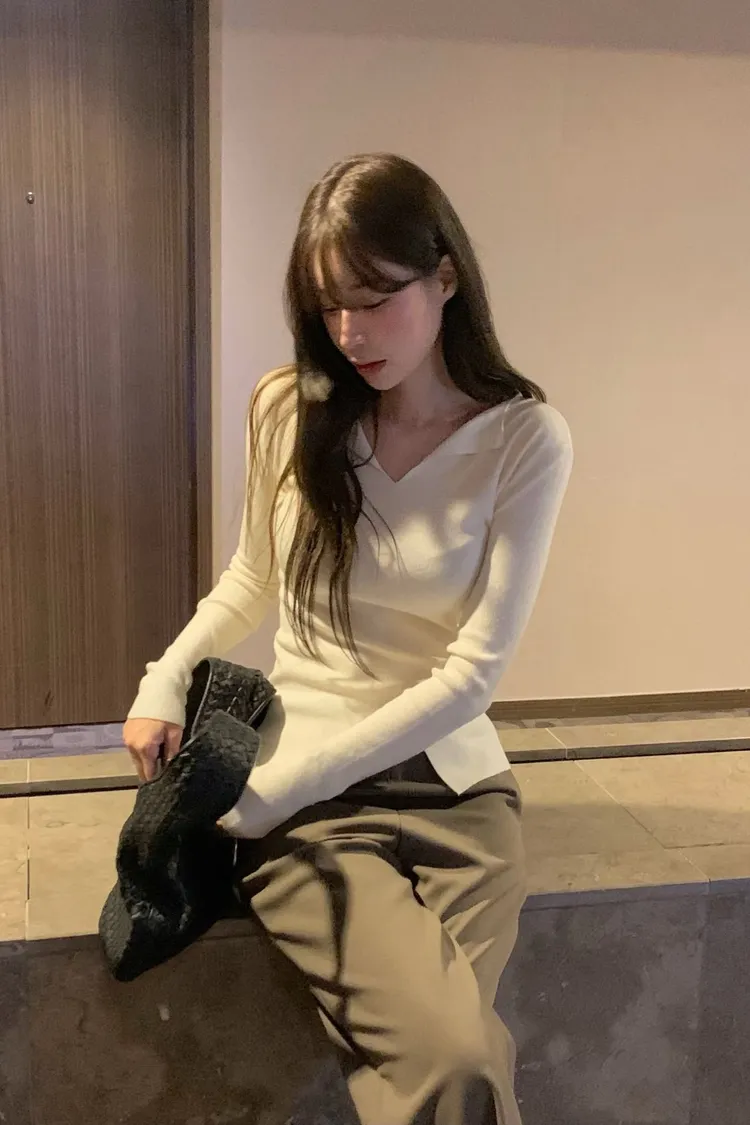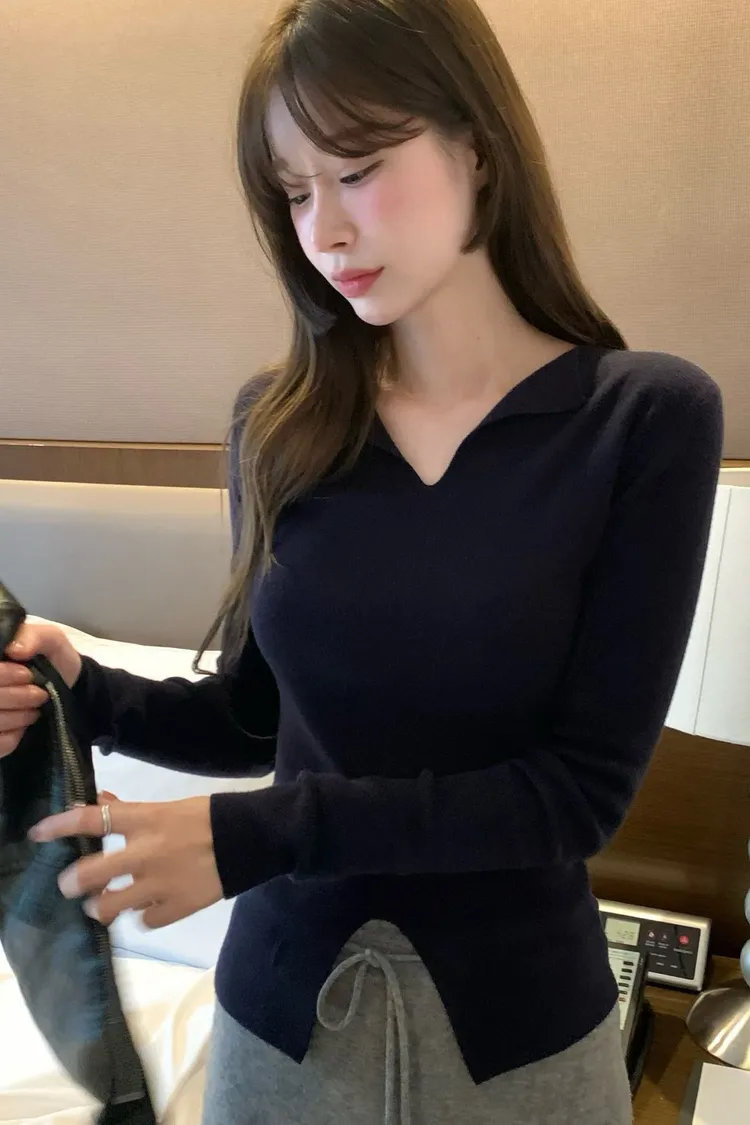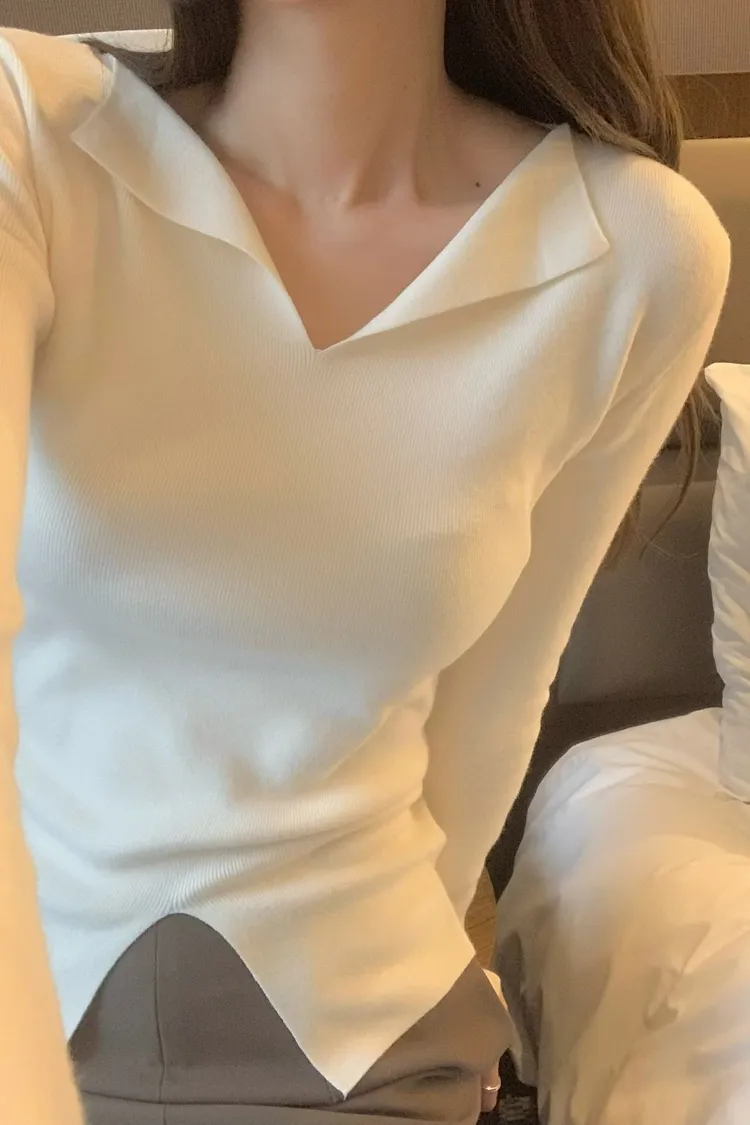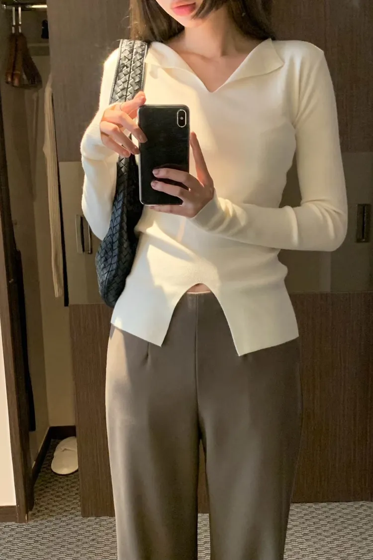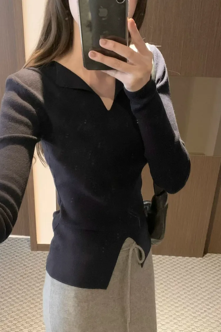 很少見的領口小翻領+下擺開叉設計✨