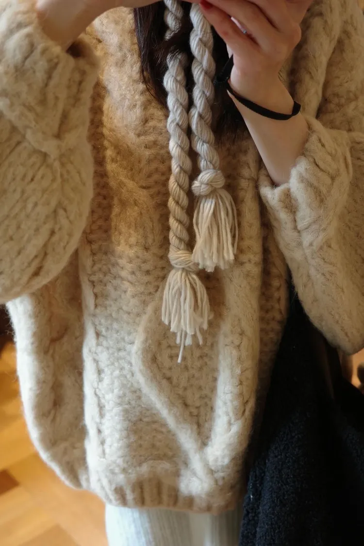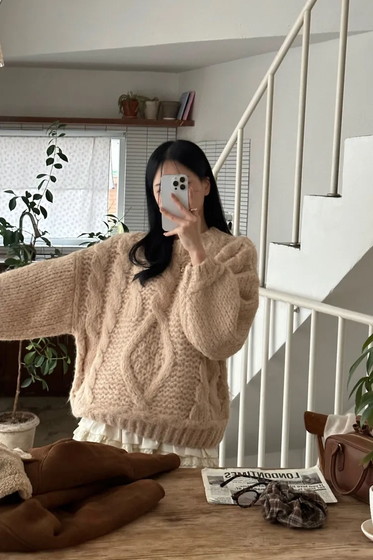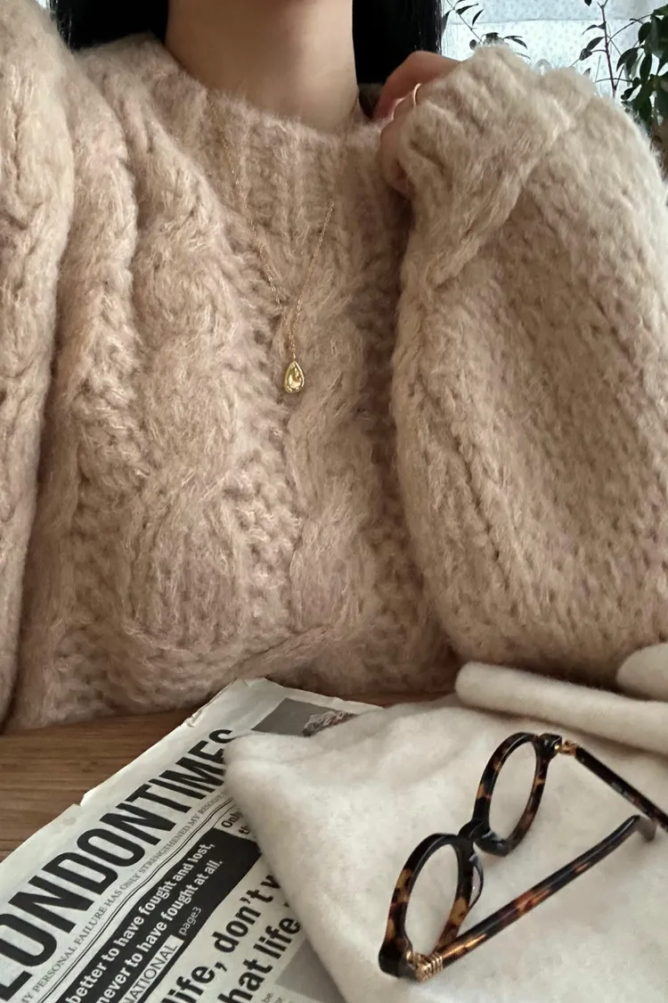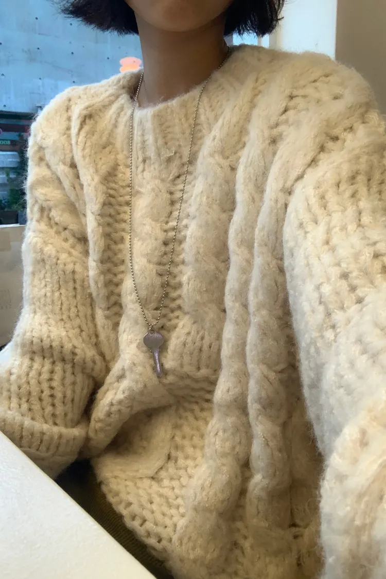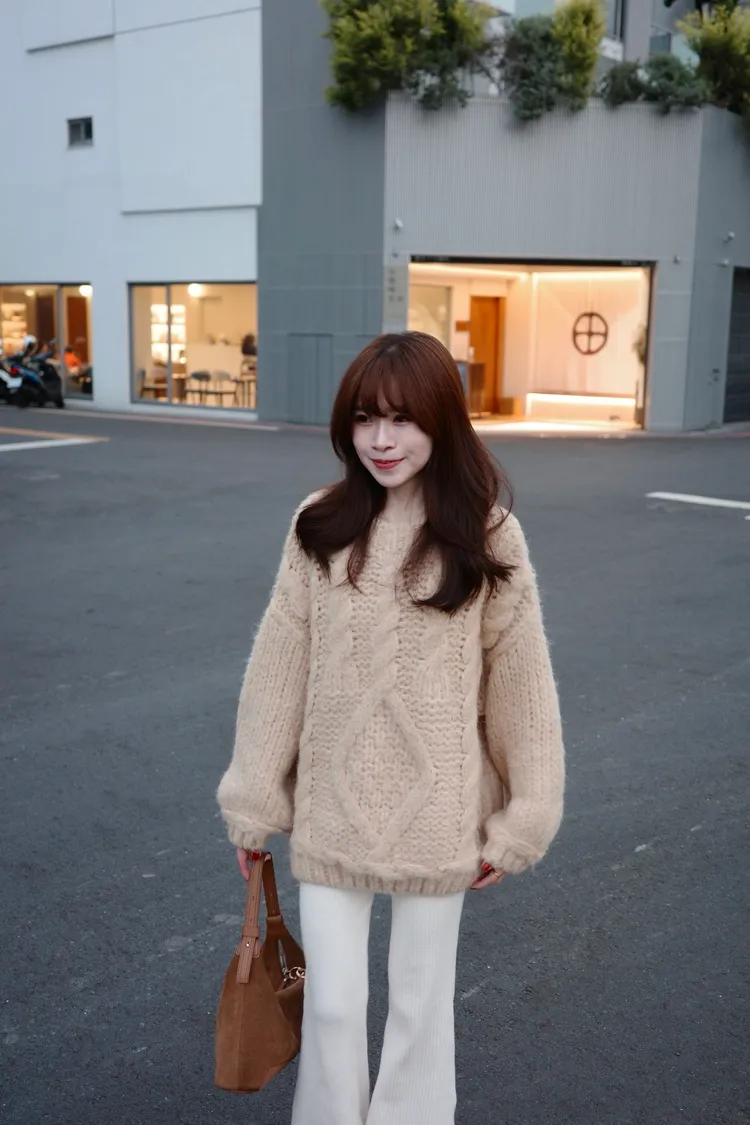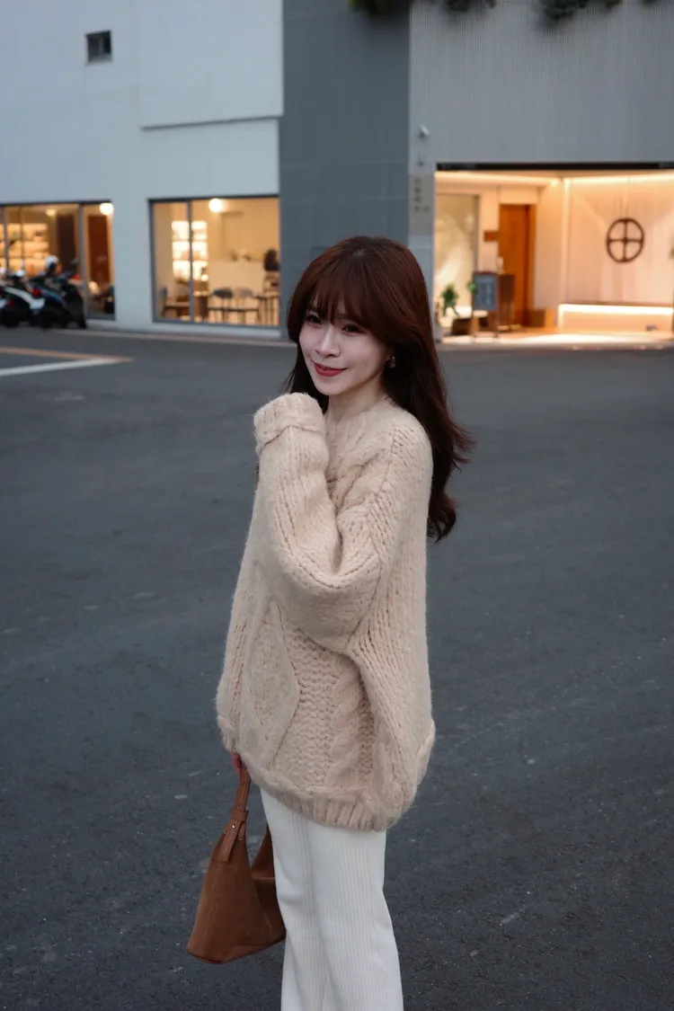 氛圍感很滿的一件大麻花羊毛毛衣💖
