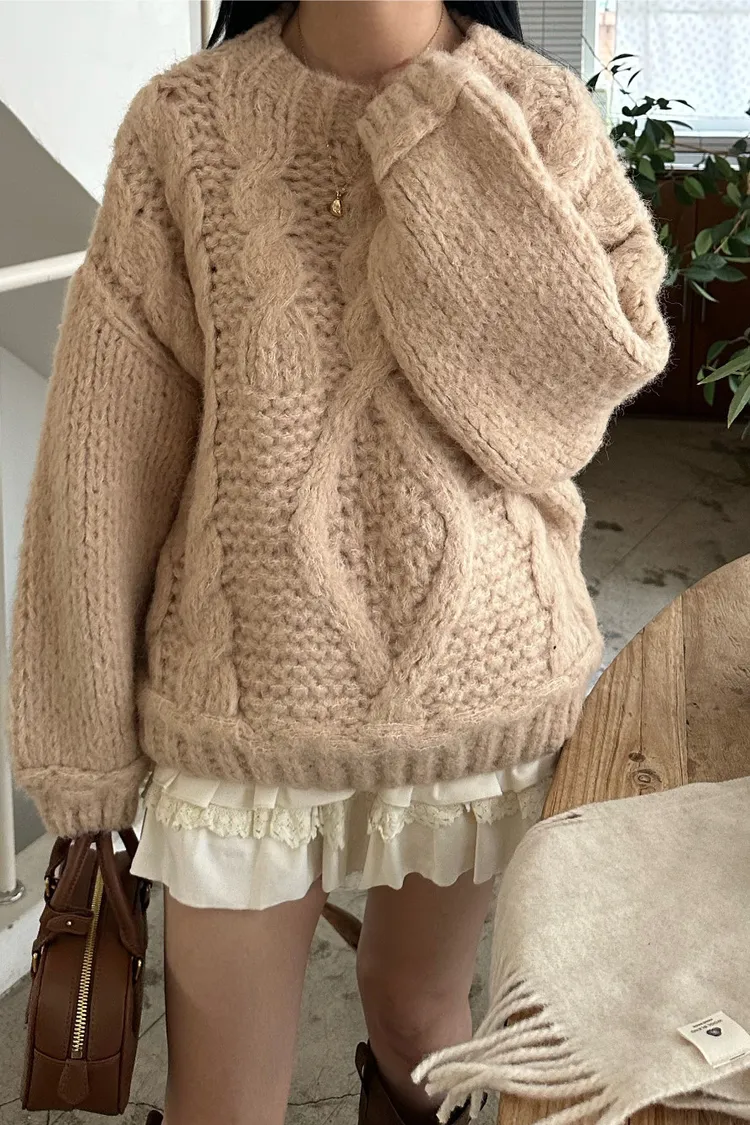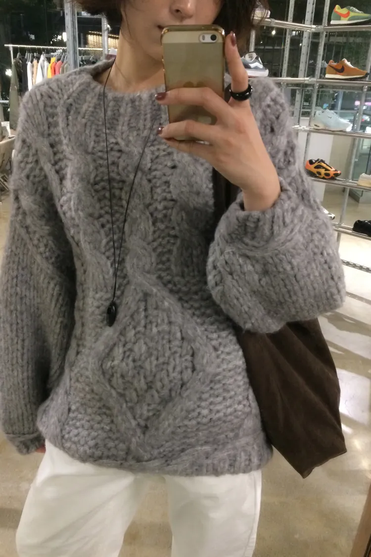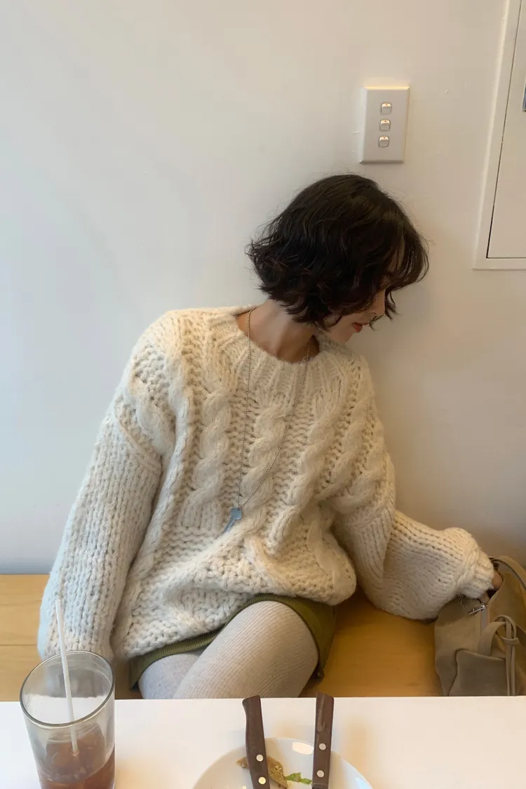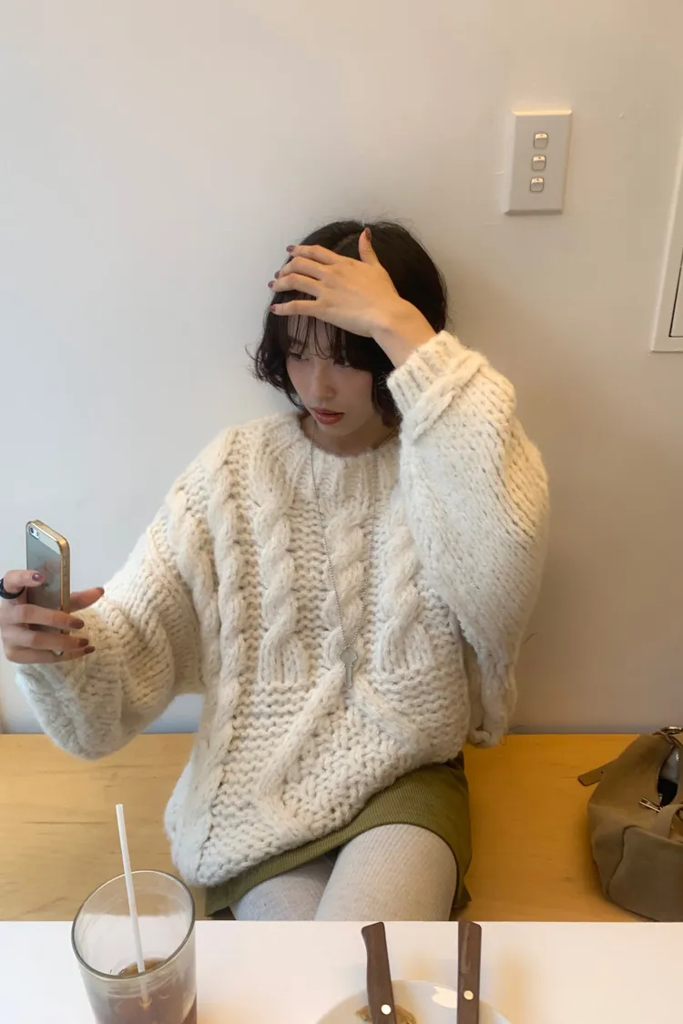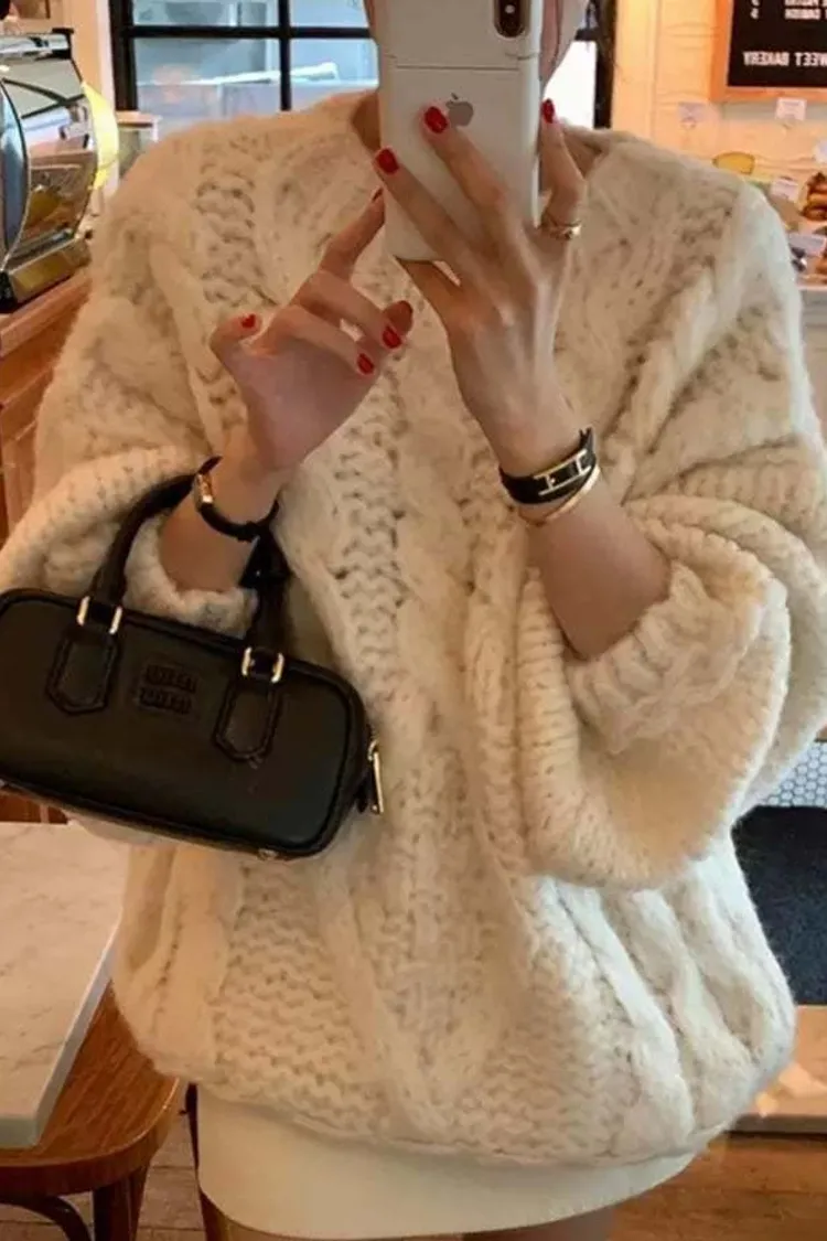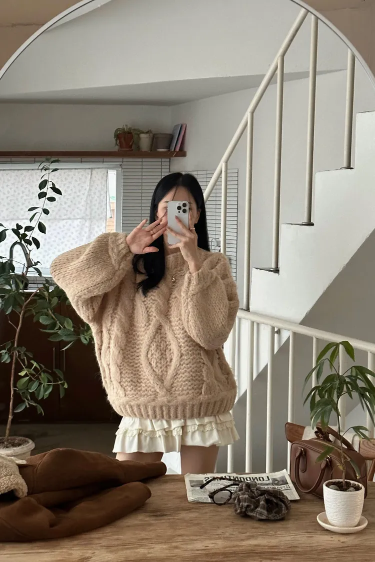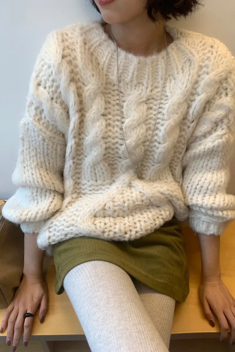 氛圍感很滿的一件大麻花羊毛毛衣💖