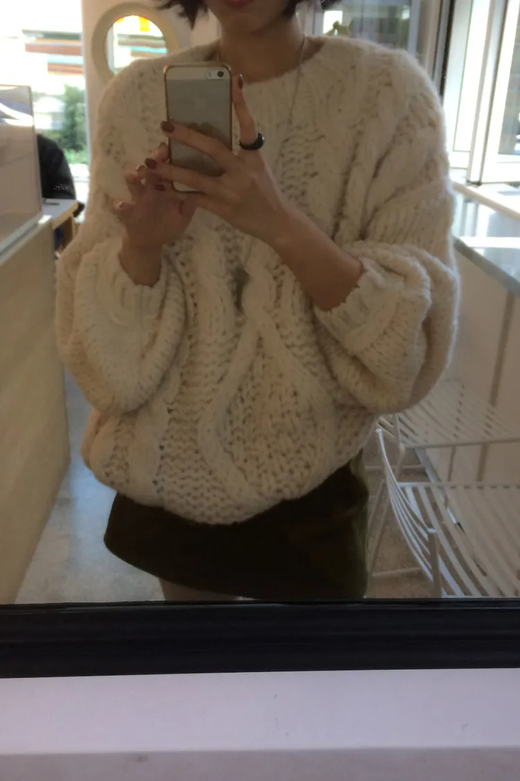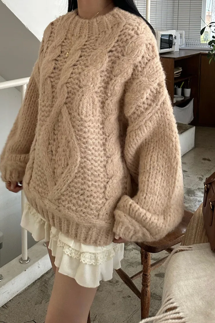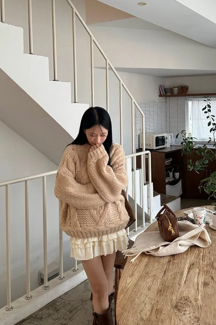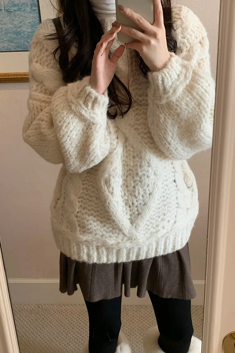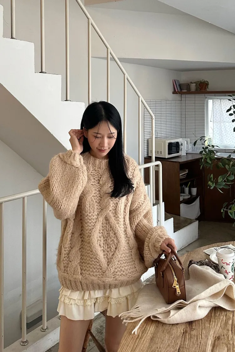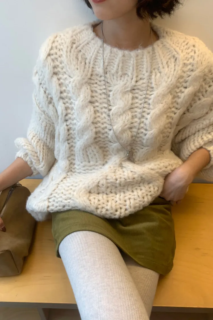 氛圍感很滿的一件大麻花羊毛毛衣💖