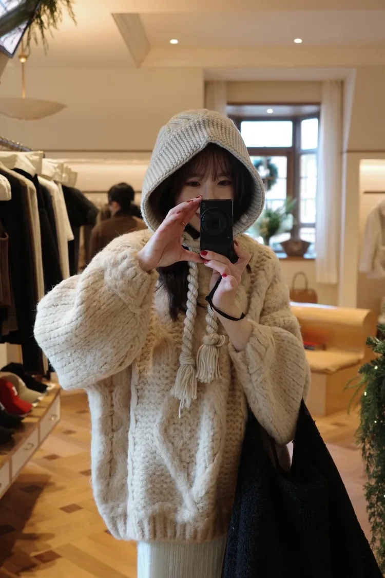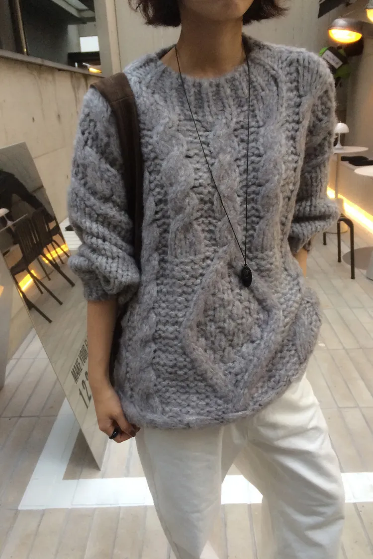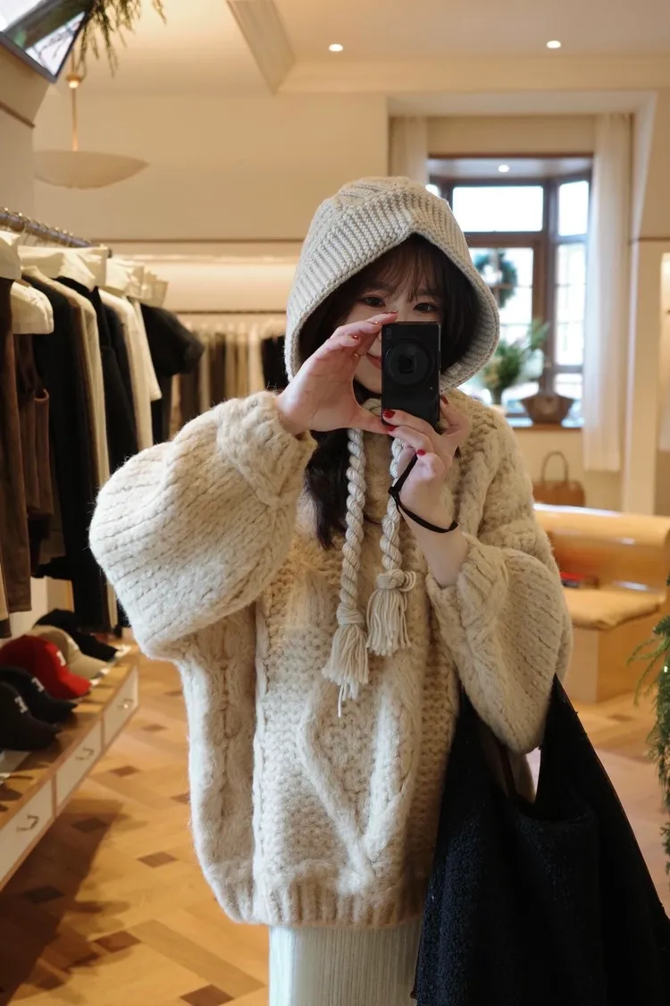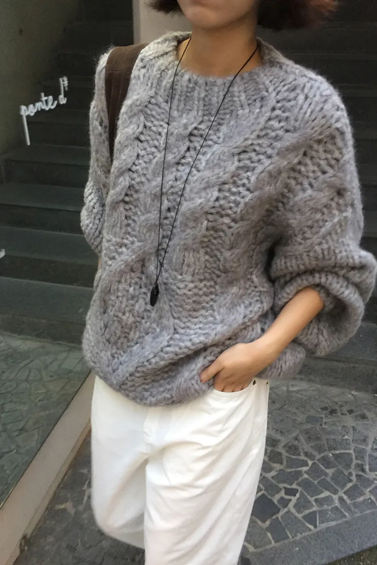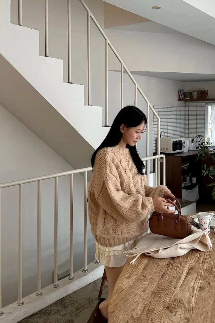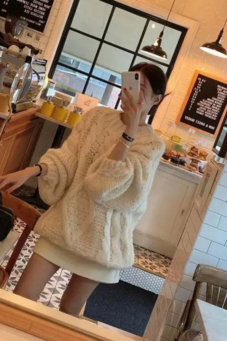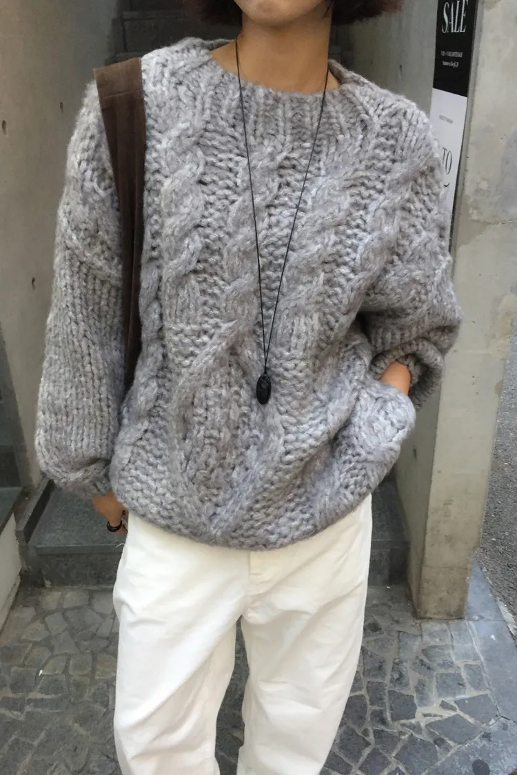 氛圍感很滿的一件大麻花羊毛毛衣💖